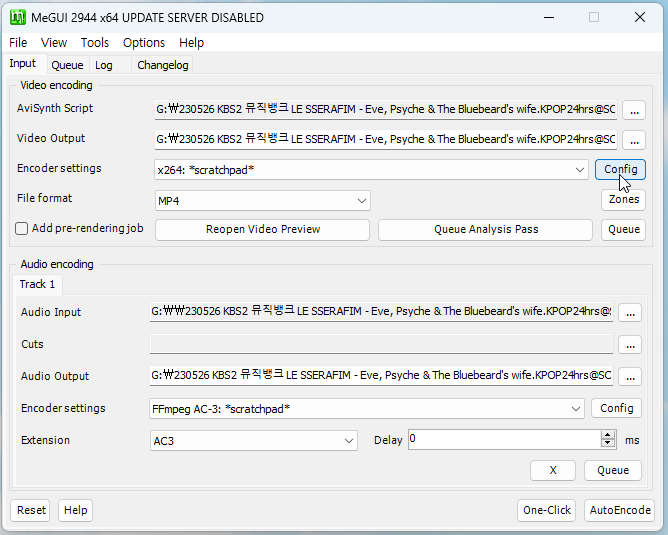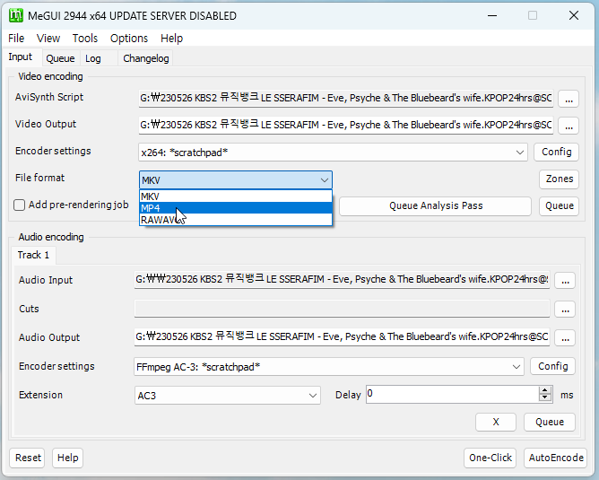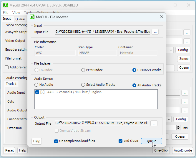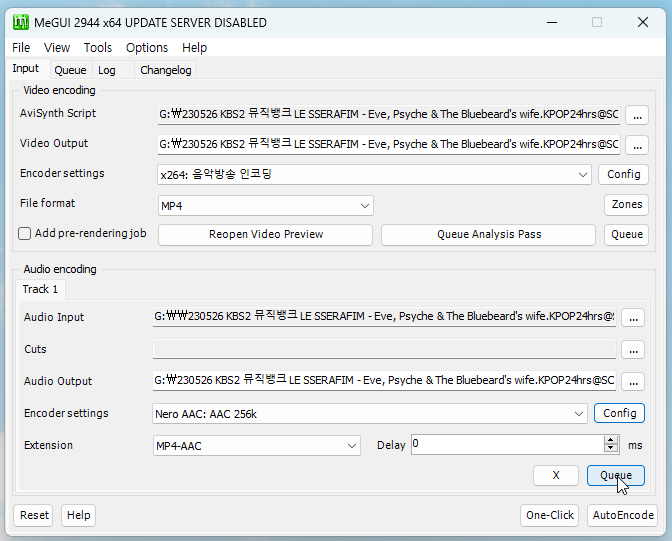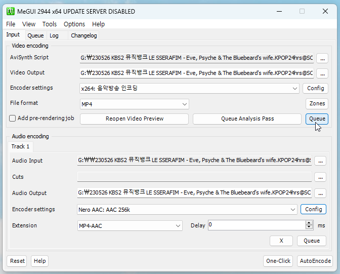 Input File에서 영상 파일을 불러와주고 Queue를 누릅니다.