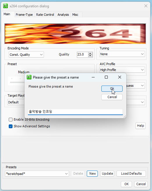 원하는 프리셋 명을 적고 Ok를 눌러주세요.