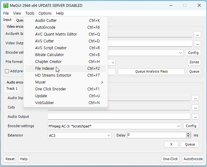 메구이 실행 후 Tolls>File Indexer를 열어줍니다.