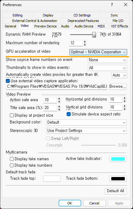 편집하기 전 베가스 Options>Preferences>video에서 GPU 가속을 활성화해주세요.