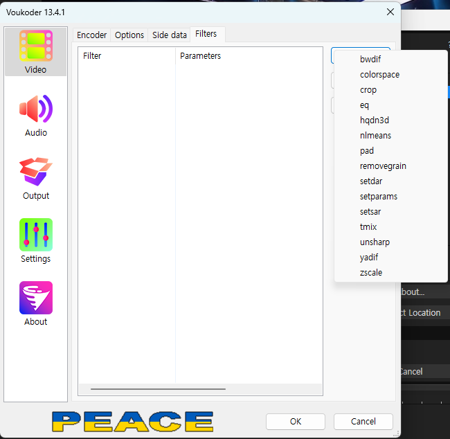 필터도 지원합니다. 여기서 제게 익숙한 필터는 노이즈 제거 필터인 hqdn3d가 보이네요. 특별한 목적이 없다면 필터는 굳이 안 쓰셔도 됩니다.