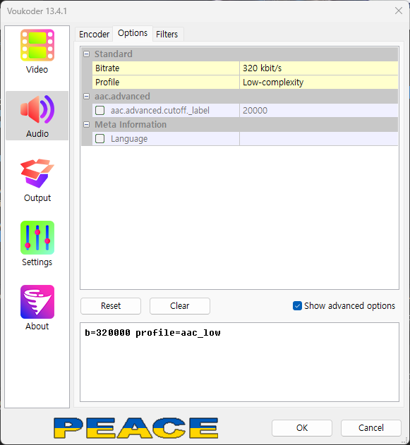 Bitrate는 320kbit/s를 추천합니다. 전에 샤나인코더 강좌에서는 256을 추천드렸었는데 AAC 코덱도 종류가 나눠져 있는지 256 값에서 음질이 안 좋게 들리는 경우도 있더라고요. Voukoder도 음질 테스트를 해보니 320kbit/s가 원본에 가깝게 들렸습니다.