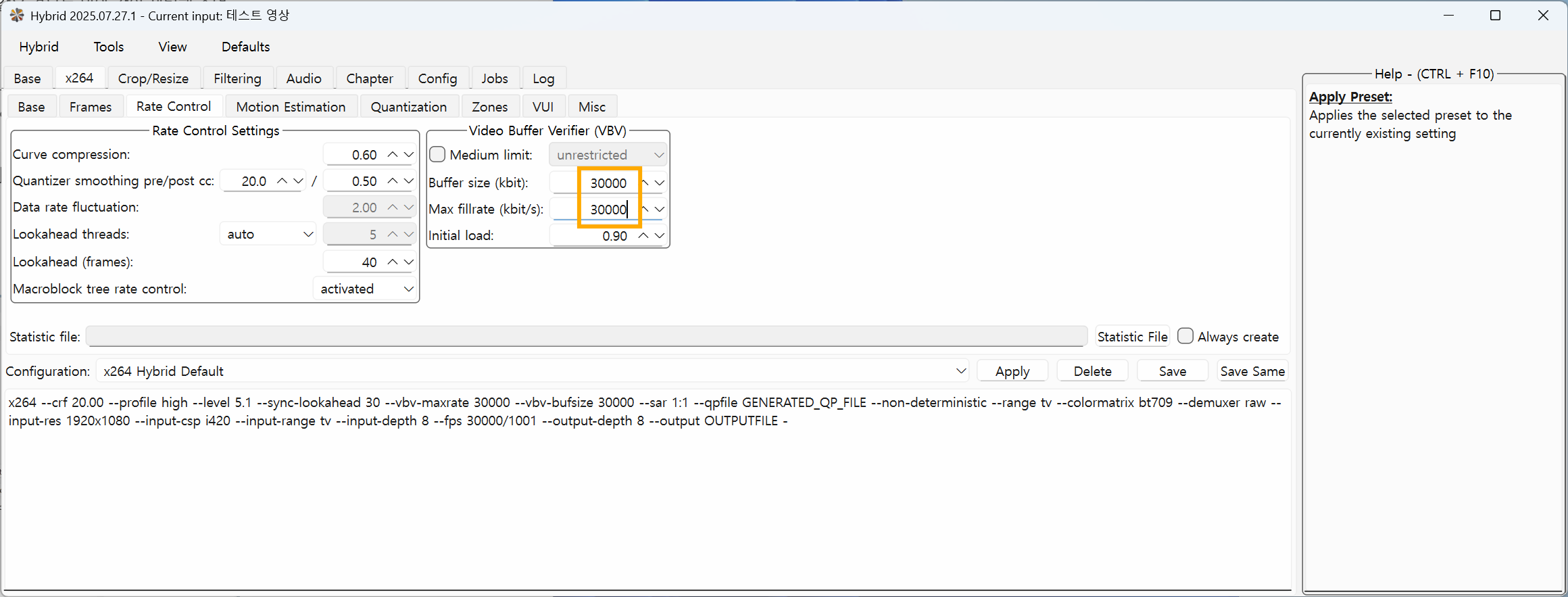 Rate Control로 이동 후 최대 비트레이트 값을 제한해 줍니다. 기본적으로 300000kbps로 되어있는데, 저는 30000kbps로 제한해 주었습니다.