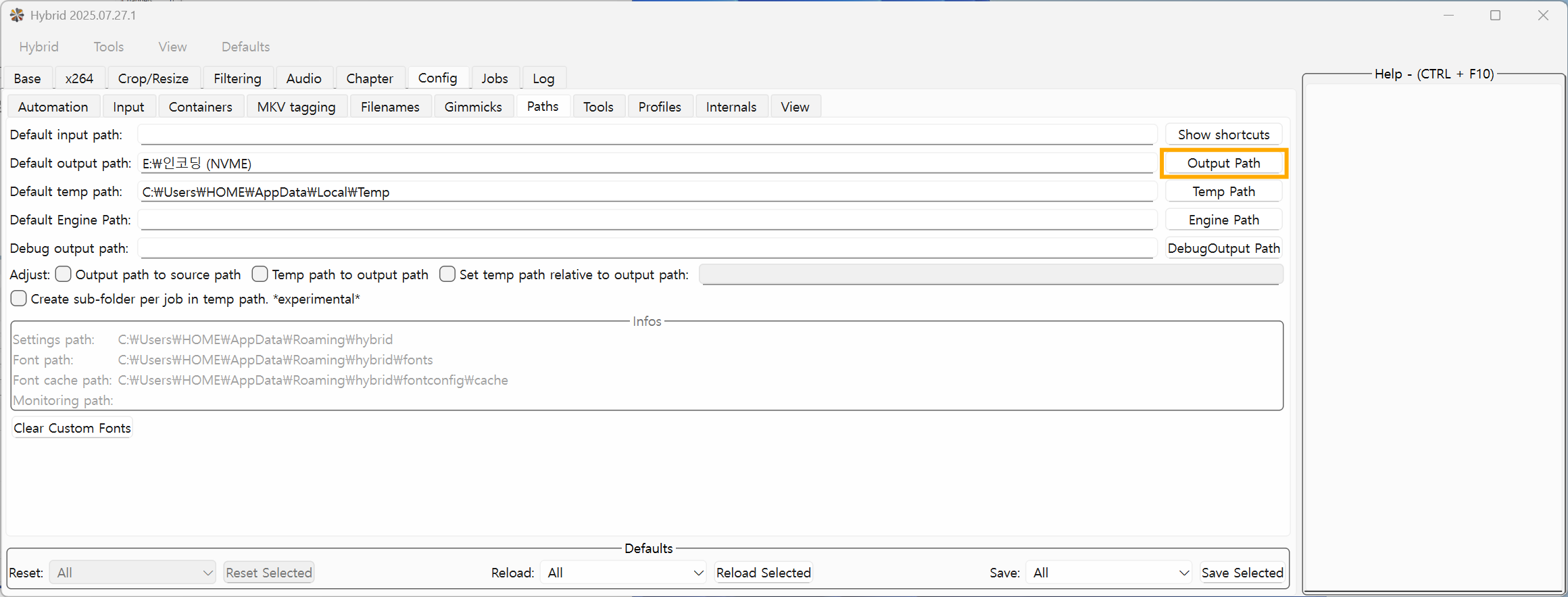Config-Paths로 이동 후 Defaults output path(결과물 출력 경로)를 지정해 줍니다.