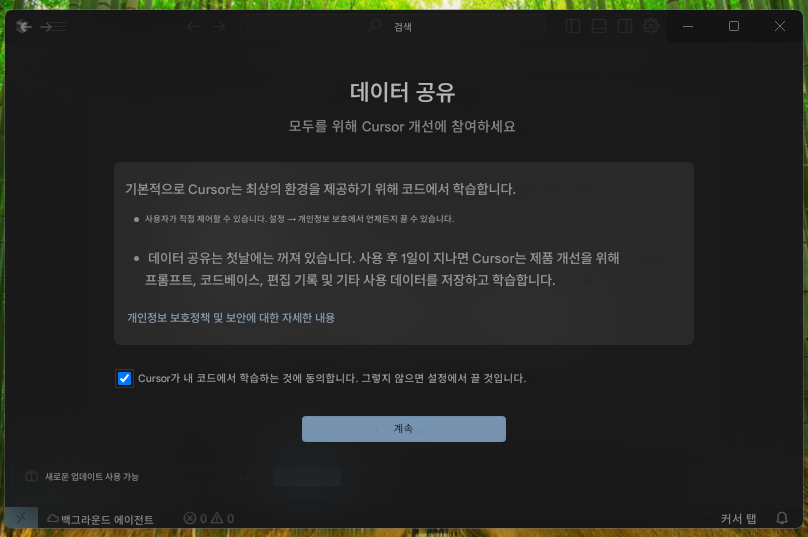 사용자 데이터 수집 동의 창이 뜨는데 동의를 안 하면 프로그램을 실행할 수 없습니다..ㅋ