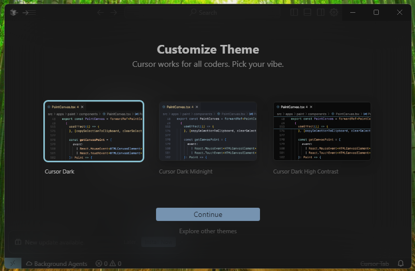 원하는 테마를 선택하고 Continue를 눌러줍니다.