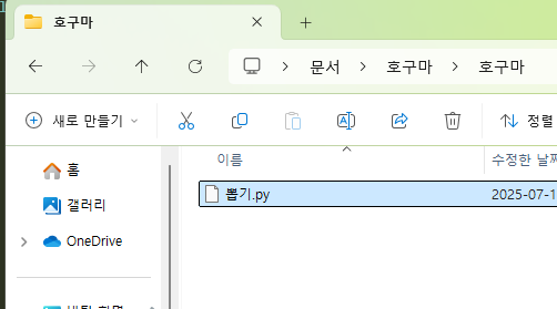 폴더로 가면 py 확장자의 파일이 만들어져 있습니다. 실행을 해보겠습니다.
