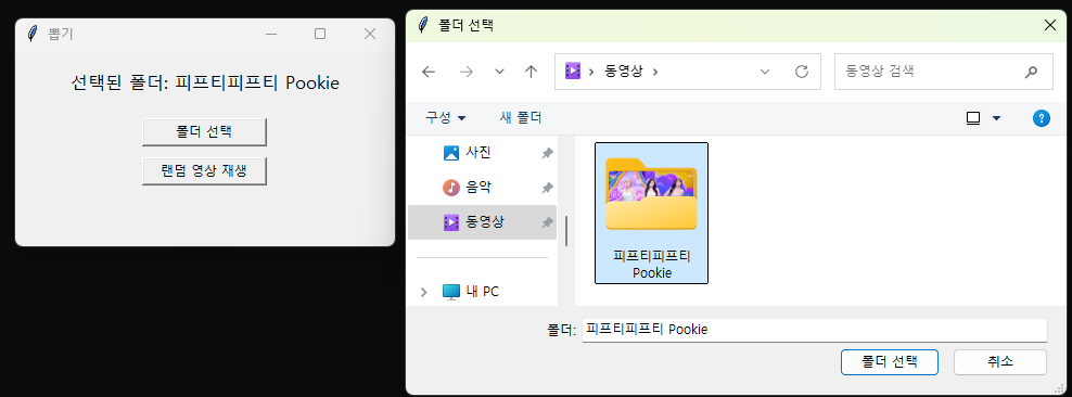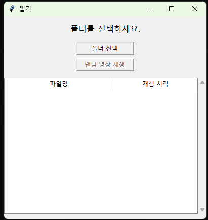 폴더를 선택하고 랜덤 영상 재생을 눌러봅시다.