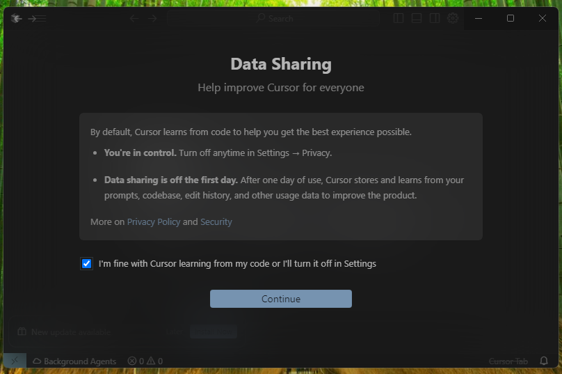간단한 도움말입니다. 읽고 Continue를 눌러줍니다.